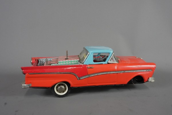 1/24ème Voiture mécanique en tôle lithographiée. Accidents manque 1 roue avant et sans clé.