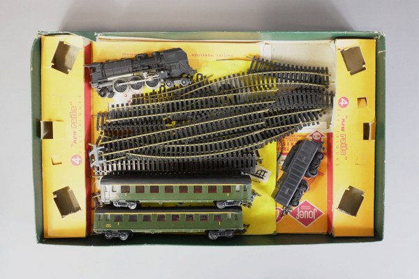 JOUEF. HO Orient Express. Comprend une locomotive, 3 wagons et un lot de rails. En l'état.