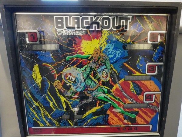 WILLIAMS électronique Flipper à monnayeur modèle « Blackout ». Date de sortie 1980. 184 x 132 x 57 cm Vendu dans l'état, traces d'usure et d'usage, oxydation, manque la clef. Sans garantie de fonctionnement.