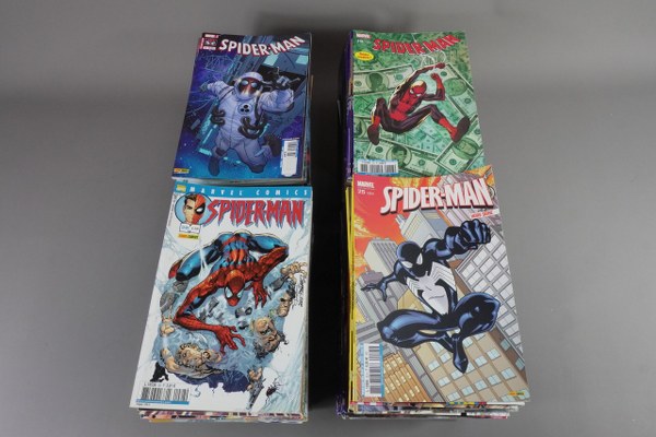 Marvel comics, lot de 131 comics Spider-man Marvel France du n°1 Renaissance (février 2000) au n°149 l'Extrémiste (juin 2012) dont le volume 11 septembre 2001. Manques les numéros 34-35-37-39-40-41-43-46-48 à 50- 56 à 60. On y joint 9 Hors série.