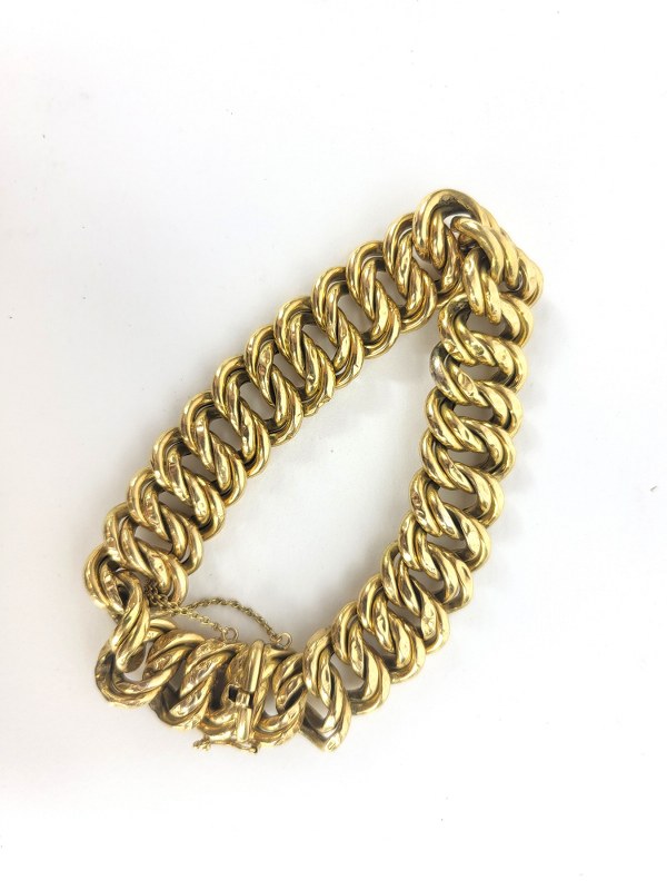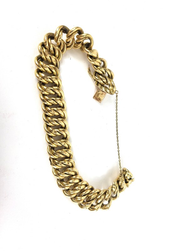 Bracelet en or jaune (750°°°) à mailles américaines. Poids : 28,6gr. Chaine de sécurité.