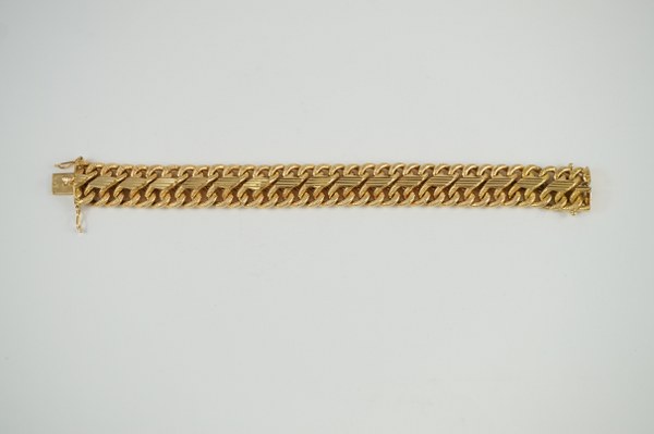 Bracelet à mailles torsadées en or jaune (750°°°). On y joint deux mailles du même modèle. Poids : 31,1 gr. Longueur : 19,3 cm.