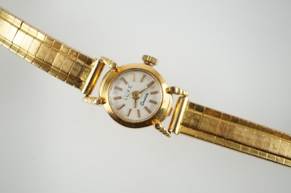 Montre de dame en or jaune (750°°°), bracelet en or jaune à mailles articulées. Poids brut : 23,4 grs.
