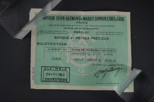 Lingot 999,6gr. Numéroté 2151.