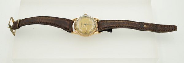 Movado. Montre d'homme en or jaune (750°°°), et boucle en métal. On y joint un lot de bijoux fantaisie et une boite couverte accidentée en porcelaine.