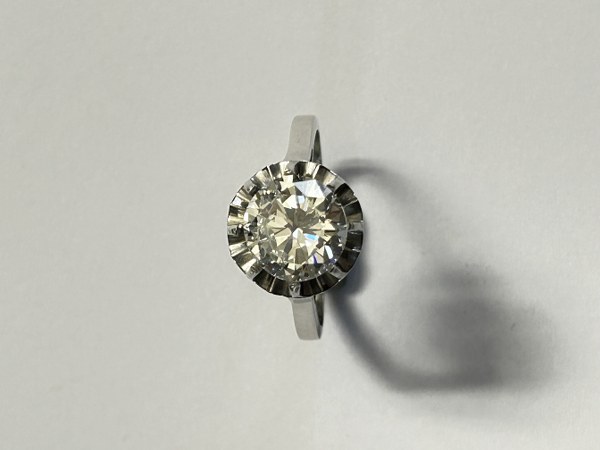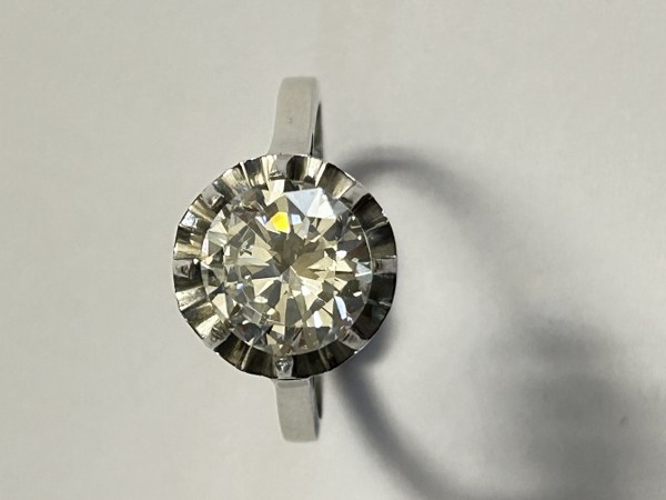 Bague en platine 850 millièmes ornée d'un diamant rond de taille brillant pesant 2.19 carats. Tour de doigt : 53. Poids brut : 3,6 g.