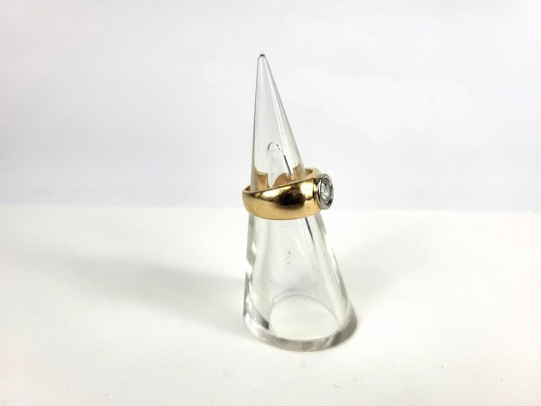 Bague en or jaune (750°°°) sertie d'un diamant d'1 carat environ. Et son sceau en cire du service public des contrôles. Poids brut : 13,7 grs. TDD : 54.