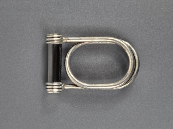 CHRISTOFLE. Pince à billets en métal argenté et laque de Chine. Ecrin Hauteur: 5 cm. Usure.