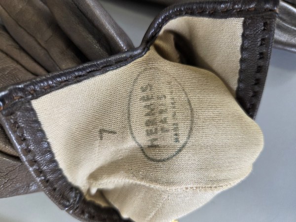 Ensemble de sept paires de gants comprenant une paire de gants en cuir Hermès et une seconde Christian Dior. Traces d'usage et d'usure.
