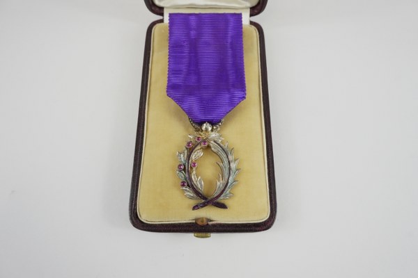 Lot de pièces en argent. Poids : 2613 gr. On y joint ; Médaille chevalier des palmes académiques en argent (800°°°) à décor de couronne de laurier et émaillée violette, sommée d'un brillant. Poids brut : 14.5 gr.