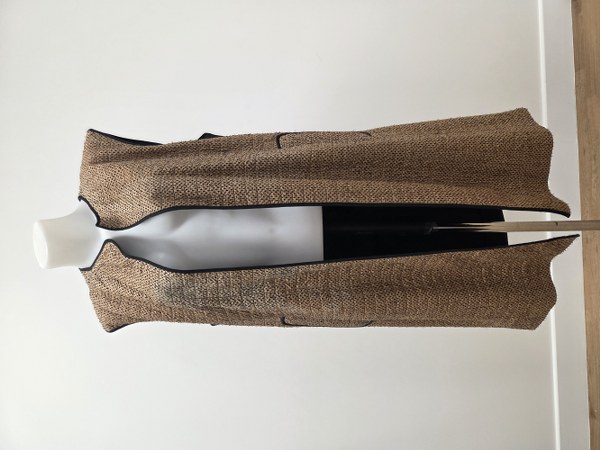 DRIES VAN NOTEN. Manteau sans manches ouvert en polyester, acrylique et laine. Taille 36. Traces d'usage.