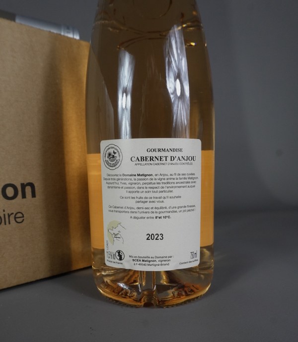 6 bouteilles CABERNET D'ANJOU, Domaine Matignon, Gourmandise, 2023 (en carton).