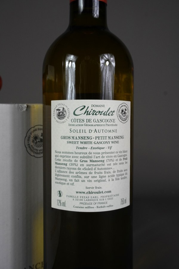 6 bouteilles COTES DE GASCOGNE blanc, Domaine Chiroulet, Soleil d 'Automne, 2023 (en carton).