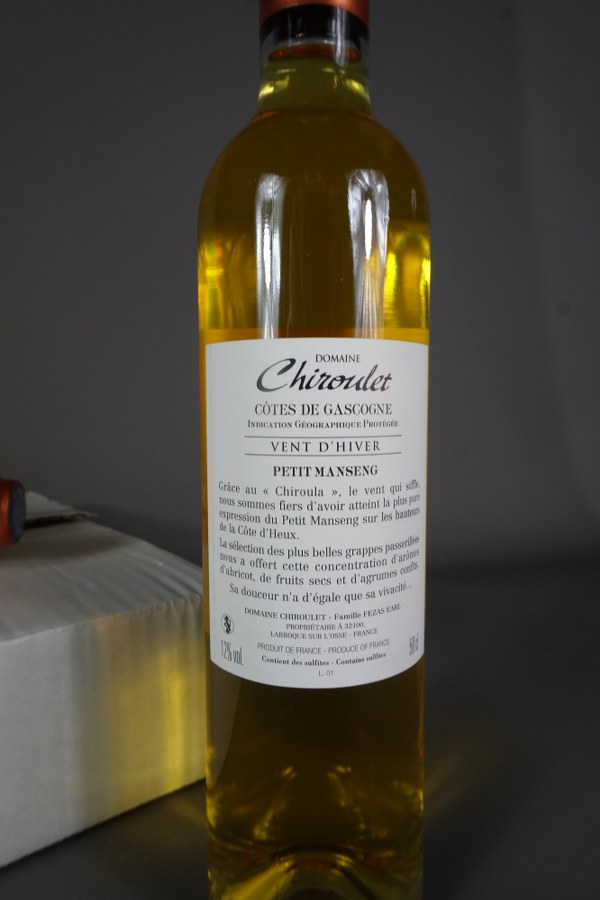 6 bouteilles de 50 cl COTES DE GASCOGNE, Domaine Chiroulet, Vent d'hiver, 2020 (en carton).