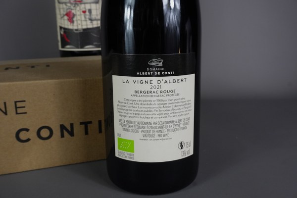 6 bouteilles BERGERAC rouge, Domaine Albert de Conti, La Vigne d'Albert, 2021 (en carton).