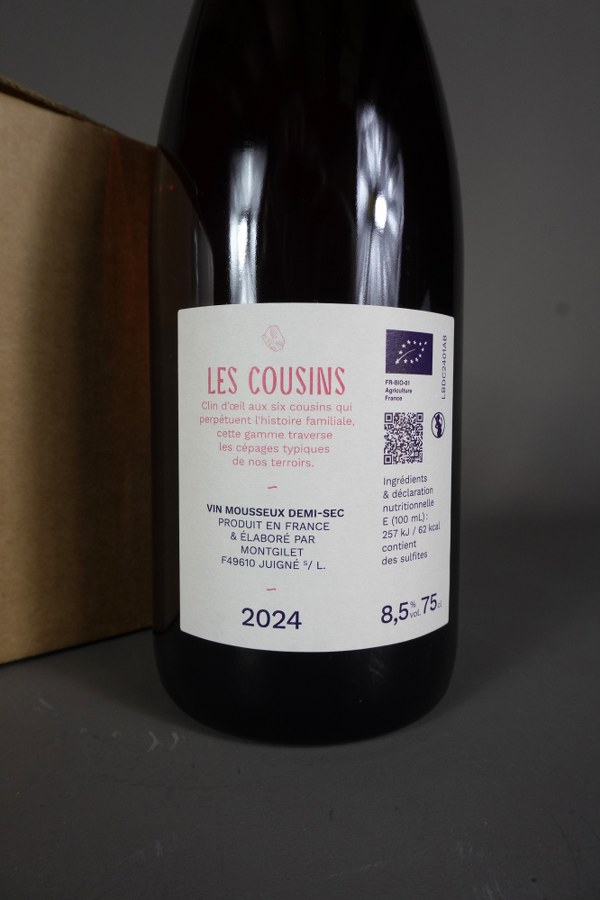 6 bouteilles Vin mousseux demi-sec, La bulle des cousins, 2024 (en carton).
