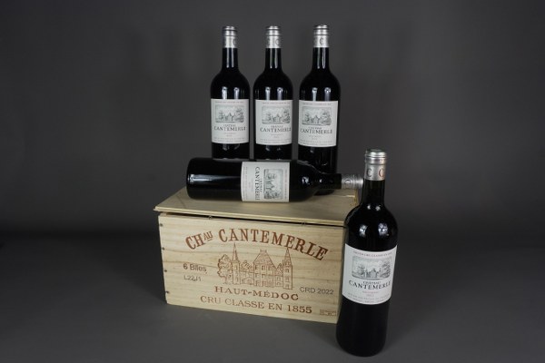 5 bouteilles HAUT MEDOC, GCC, Château Cantemerle, 2022 (caisse bois ouverte incomplète).