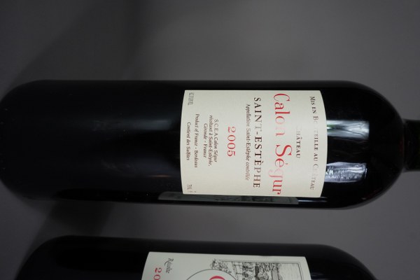 2 bouteilles SAINT ESTEPHE GCC Château Calon-Séqur, 2005 (on y joint la caisse bois).