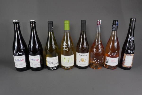 Lot de 8 bouteilles comprenant : - 1 OCCHIO AL BIANCO, Sieman, 2020 - 1 CORBIERES, Le Blanc de l'Oeuf, 2016 - 1 PAYS D'OC IGP, Domaine de Castelnau, Les Ronces, 2024 - 1 COTES DE PROVENCE, Roseline prestige, 2022 - 1 COTES DE GASCOGNES, Uby, rosé n°6, 2023 - 1 de 50 cl COTEAUX DE L'AUBANCE, Domaine de Montgillet, Les trois Schistes, 2018 - 2 VIN MOUSSEUX demi-sec, La bulle des Cousins, 2024