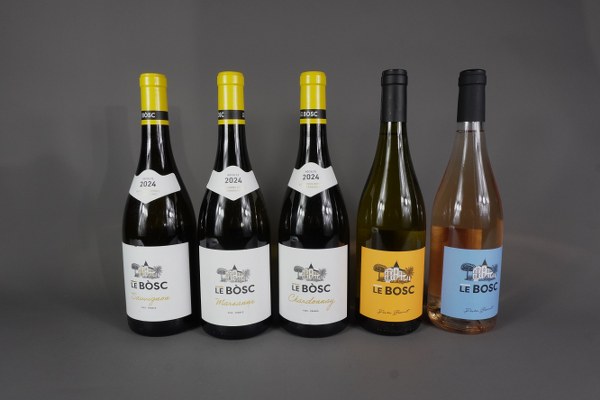 Lot de 5 bouteilles comprenant : - 3 bouteilles PAYS D'OC IGP, Le Bosc, Sauvignon, 2024 - 1 PAYS D'OC IGP, Le Bosc Pierre Besinet, 2024 - 1 PAYS D'OC rosé, Le Bosc Pierre Besinet, 2024