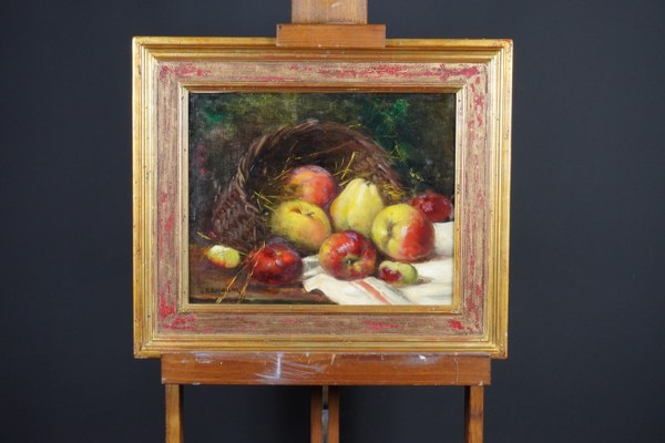 Étienne CORNELLIER (1838-1902). Nature-morte aux pommes. Huile sur toile signée en bas à gauche. 33,5 x 40,5 cm.