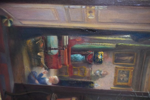 Albert LORIEUX (né en 1862). Jeune garçon jouant dans un intérieur. Huile sur toile signée en bas à droite et datée 1909. 73 x 60 cm.