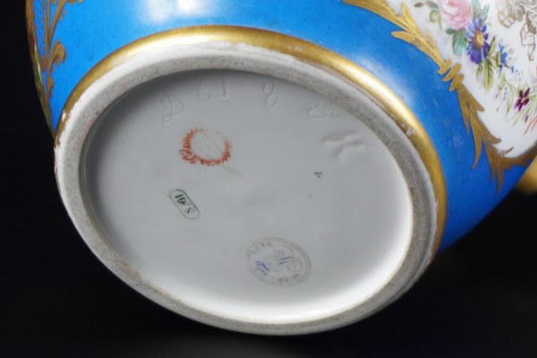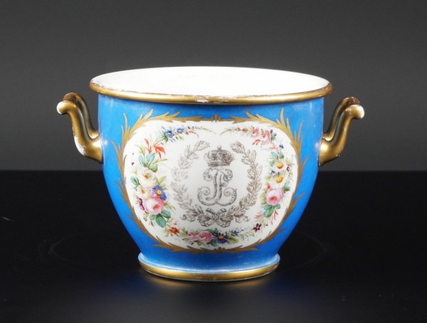 Sèvres, 1846. Rafraichissoir au chiffre de Louis Philippe surdecoré en 1861. Marque en rouge du château de Fontainebleau. Hauteur : 12,8 cm. Diamètre : 16,3 cm.
