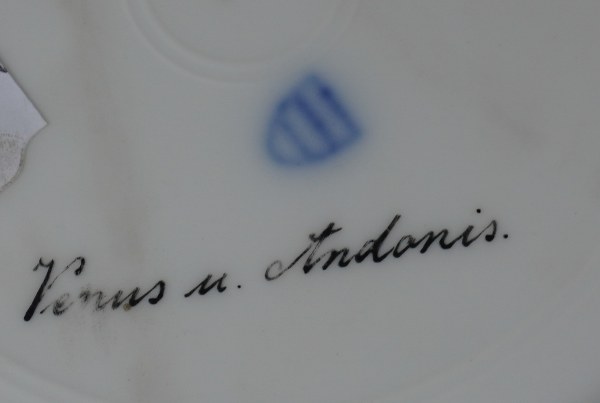 VIENNE. Deux assiettes en porcelaine à décor polychrome et doré de scènes mythologiques. Signées dans le décor. Marquées et titrées au dos. Fin du XIXème siècle. Diamètre : 24,2 cm.
