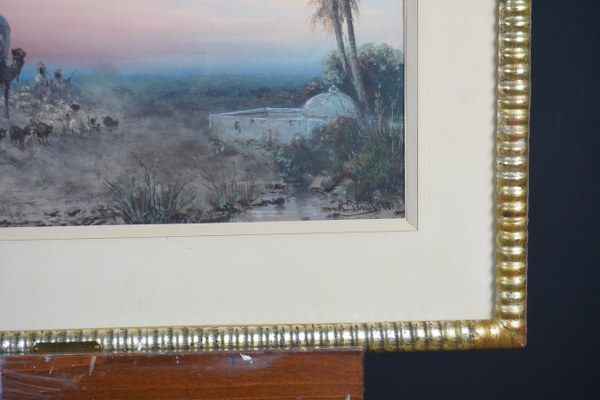 Paul B. PASCAL (1832/39-1903/05). Caravane au crépuscule. Gouache signée et datée 1881 en bas à droite. Vue : 38 x 60 cm.