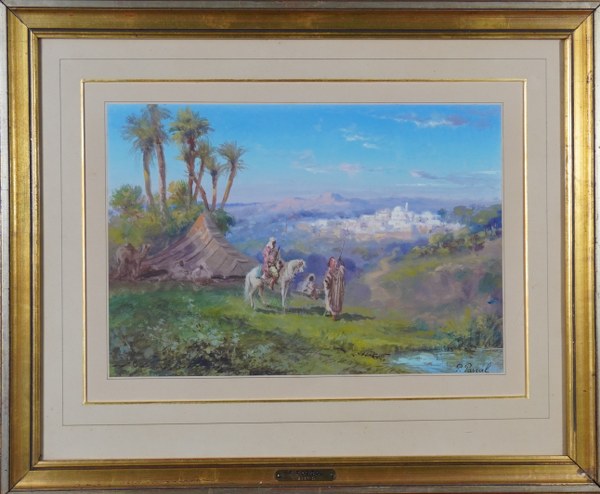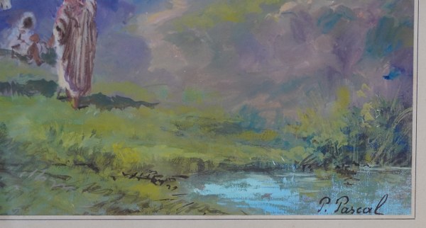 Paul B. PASCAL (1832/39-1903/05). Campement arabe. Gouache signée en bas à droite. Vue : 23 x 33 cm.