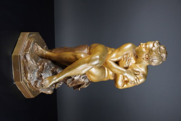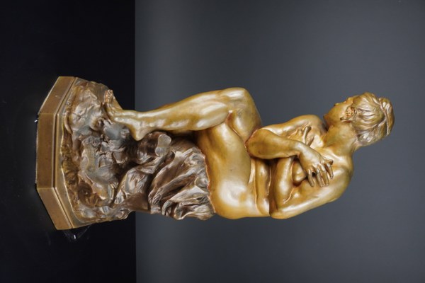 Aimé-Jules DALOU (1838-1902). La femme surprise. Épreuve en bronze à patine médaille et brune nuancée. Fonte de Susse Frères Editeur. Hauteur : 55,5 cm.