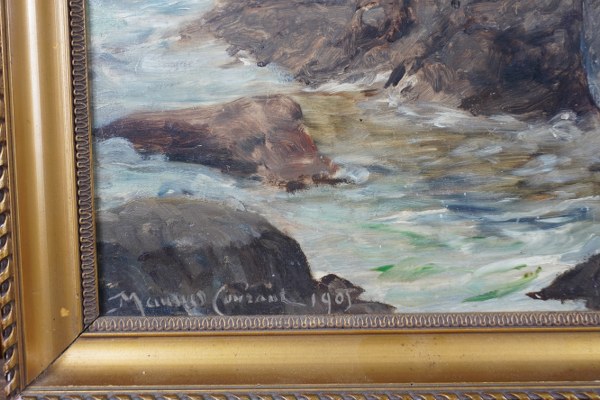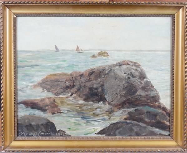 Maurice COURANT (1847-1926). Bord de mer. Huile sur panneau signée et datée 1901 en bas à gauche. 27,5 x 35,5 cm.
