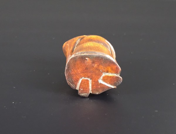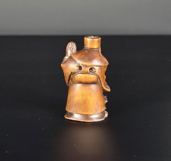 Japon, époque Meiji, circa 1900. Netsuke en bois représentant le Sennim Chokaworo faisant sortir de sa gourde magique un cheval. Hauteur : 5,2 cm.