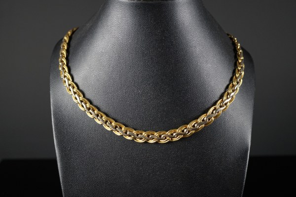 Collier en or (750°°°) de deux tons. Longueur : environ 45,5 cm. Poids net : 36,2 gr.