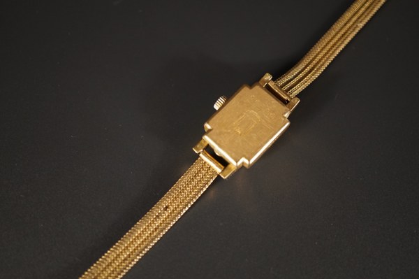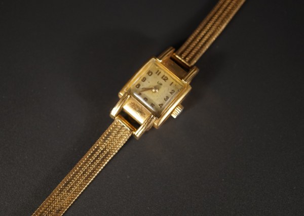LIP. Montre de dame en or (750°°°), boitier carré numéroté 06396. Poids brut : 22,9 gr.