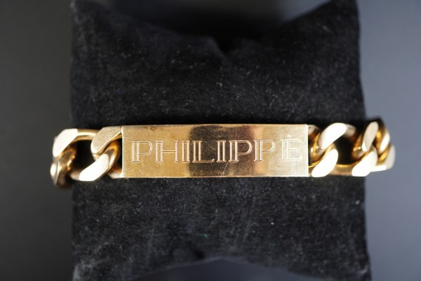 Gourmette en or jaune (750°°°). Poids net: 54,9 gr.