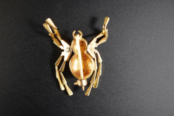 Une broche en or jaune (750°°°) figurant une araignée. Poids : 6,6 gr.
