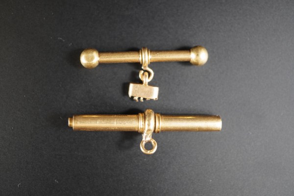 Deux éléments en or jaune (750°°°). Poids brut : 7,1 gr.