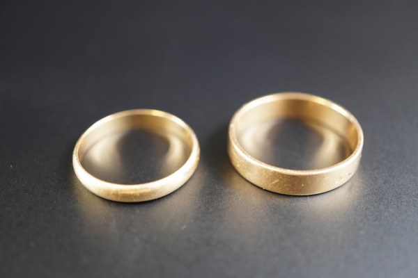 Ensemble de deux alliances en or jaune (750°°°). Poids net: 7,6 gr.