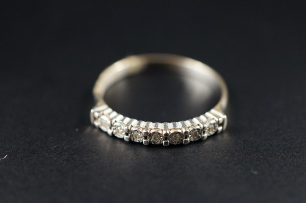 Alliance semi américaine en or gris (750°°°) sertie de brillants. TDD : 59,5. Poids brut : 2,3 gr.