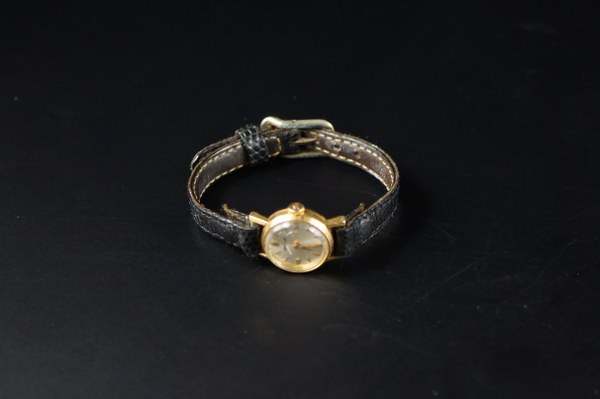 JAEGER LECOULTRE. Montre de dame en or jaune (750°°°). Bracelet en cuir. Poids brut: 10 gr.