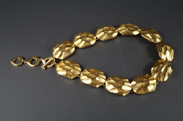 YVES SAINT-LAURENT. Collier en métal doré. Longueur : 41-47 cm.