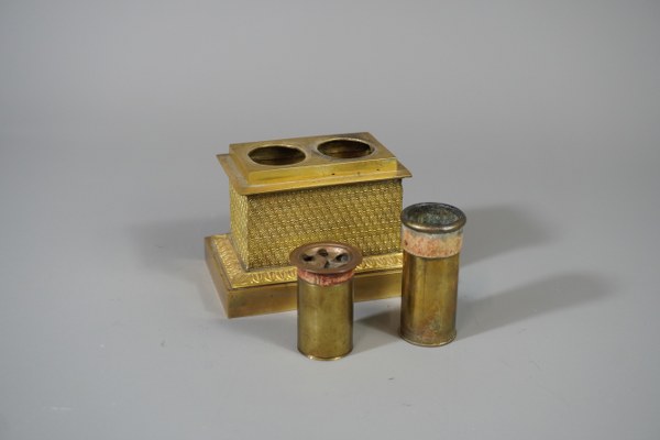 Encrier en bronze doré. 7x10cm.
