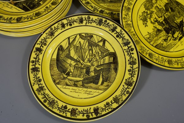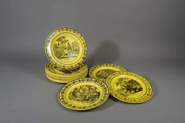 Croisy, Série de 12 assiettes sur Robinson. 3 Petits éclats.