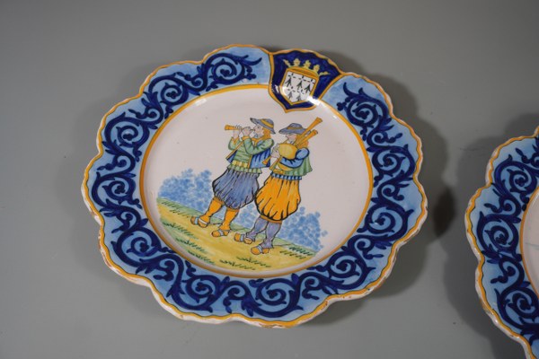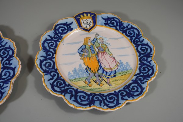 Paire d'assiettes HB Quimper à décor de couple Breton. Diamètre: 25cm.Accidents.