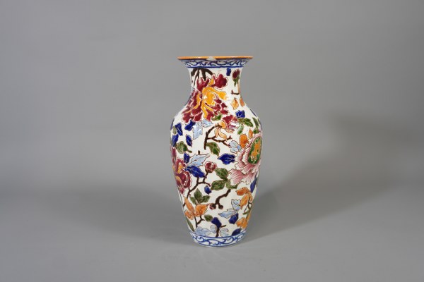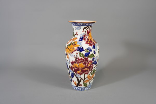 Gien. Vase décor aux pivoines. Hauteur: 27 cm. Accidents.