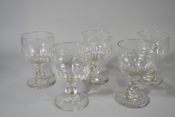 Suite de 6 verres à pied en verre. Deuxième moitié du XIXe siècle. Hauteur : environ 13,3 cm.