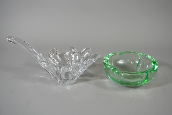 Daum, vide poche en cristal et cendrier en cristal vert.