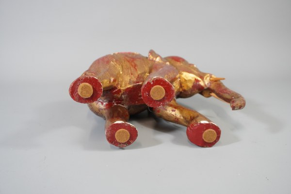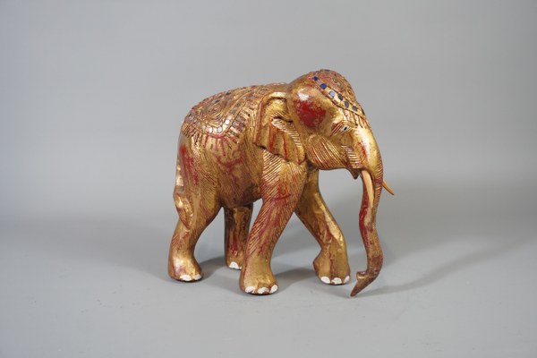Éléphant en bois doré sculpté. Hauteur: 22cm.