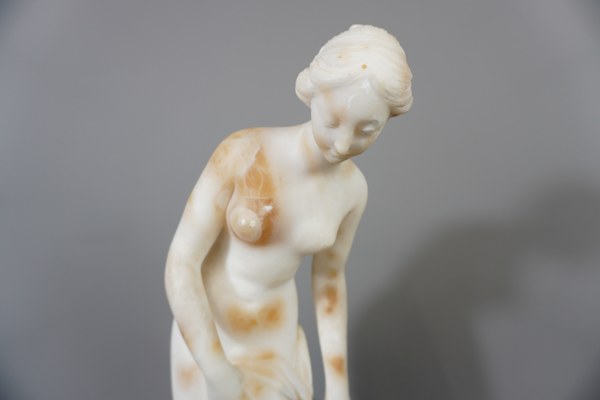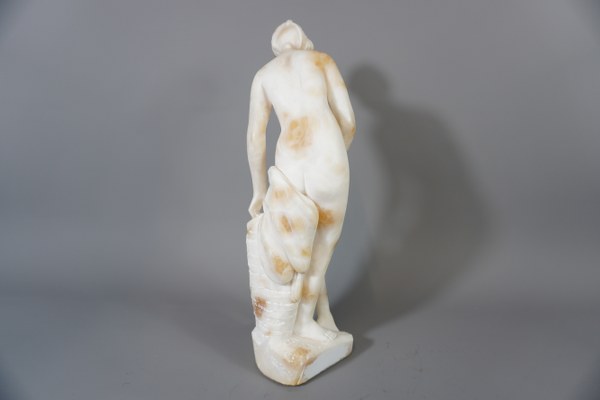 D'après Falconnet. Nymphe au bain. Albâtre. Signé. Petits accidents. Hauteur : 40,5 cm.